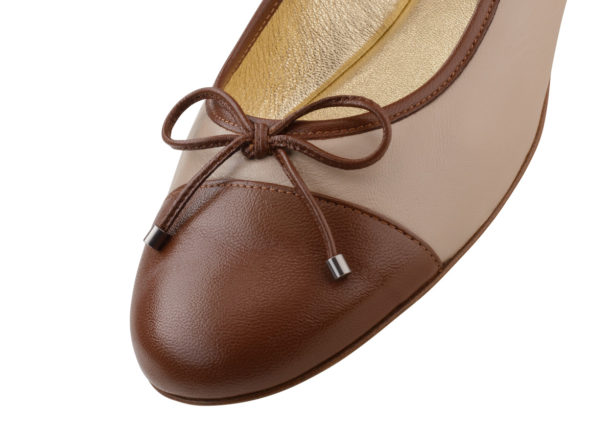 Mit legerer zeitgenössischer Eleganz überzeugen diese Ballerinas. Sie wurden in der Nähe von Florenz in einer braun/beige Kombination aus handschuhweichem Nappaleder hergestellt. Das Paar verfügt über die charakteristische Schleife sowie einer besonderen haltgebenden Paspelierung. Die Round Toe- Optik und der flache Schicht Absatz runden das Paar perfekt ab. Die aufwendige Sacchetto Verarbeitung mit ihrem speziellen Lederpolster und Flexibilität garantiert höchsten Tragekomfort.