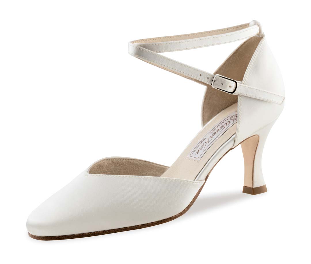 Exklusiver und unendlich bequemer Werner Kern Tanz- und Brautschuh mit einem verführerischen V-Cut. Eine individuell verstellbare Fesselspange mit Druckknopfschnalle sorgt für den nötigen Halt und optimalen Tragekomfort. Hier aus der Serie Werner Kern Bridal das Modell mit Straßenledersohle. Zu Betty mit Tanzledersohle geht es hier.