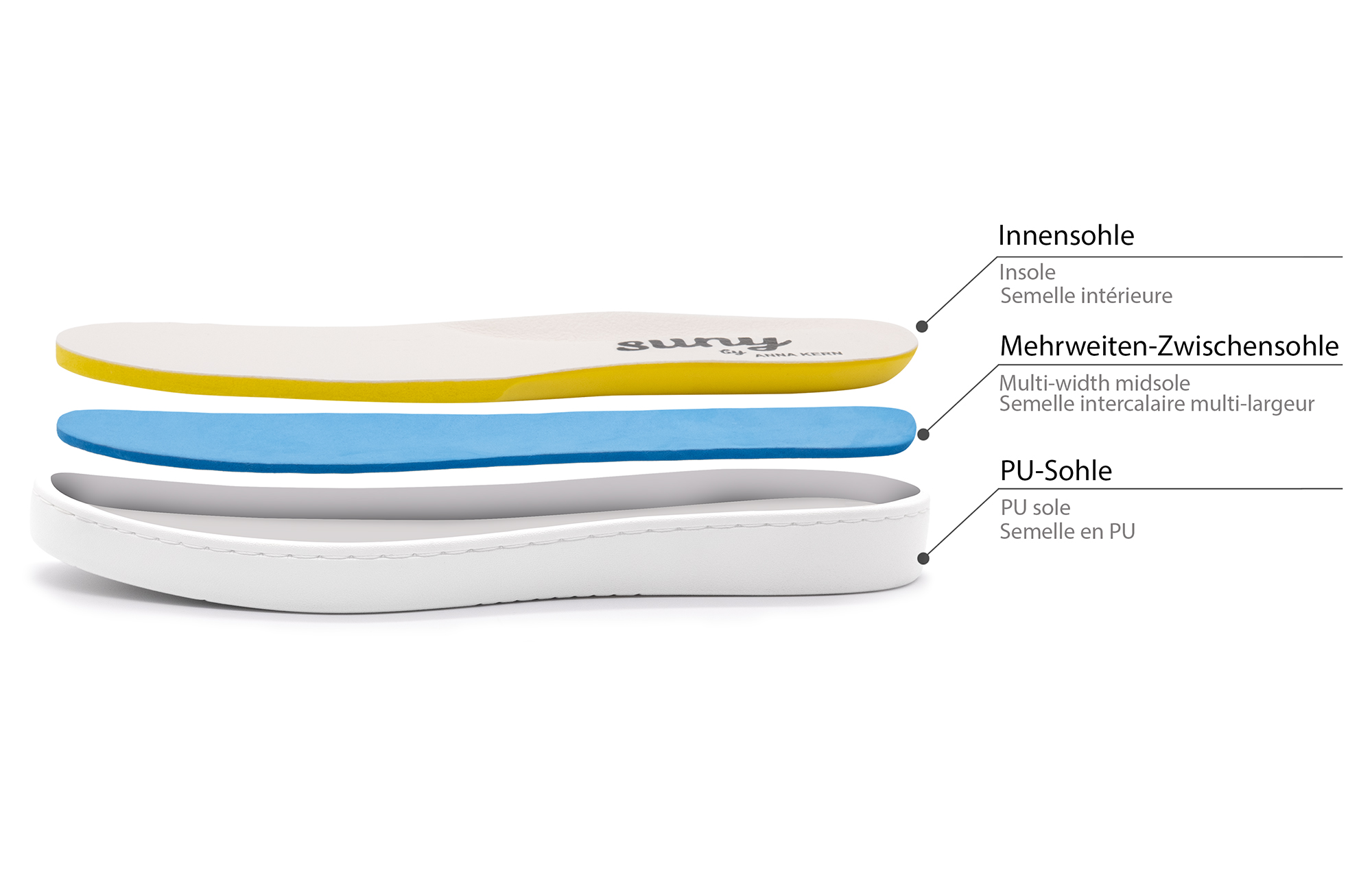 Die herausnehmbare Mehrweiten-Zwischensohle ermöglicht eine individuelle Anpassung der Passform und kann für zusätzlichen Raum bei breiteren Füßen entfernt werden.
