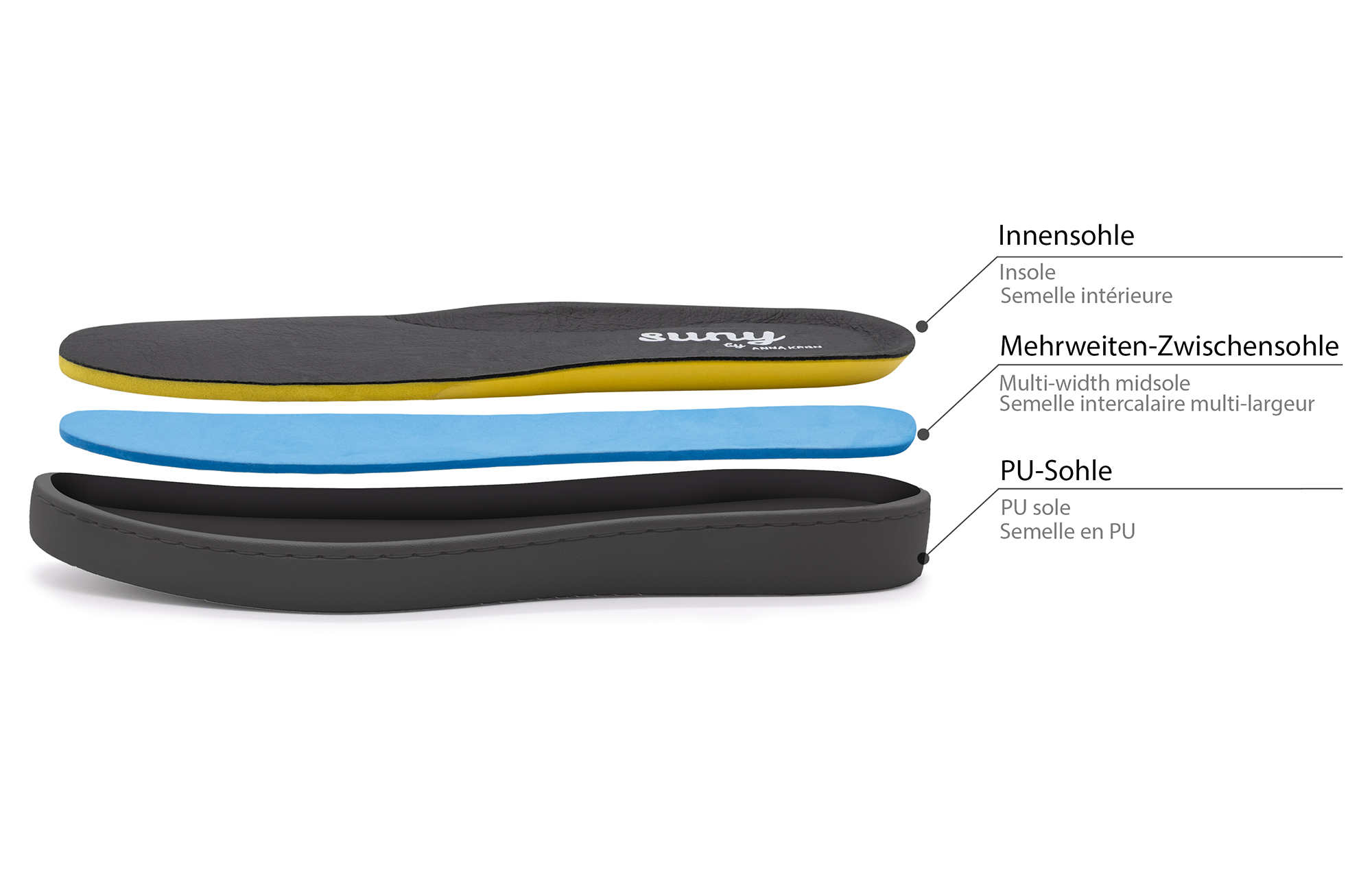 Die Mehrweiten-Zwischensohle ermöglicht eine individuelle Anpassung der Passform und kann für zusätzlichen Raum bei breiteren Füßen entfernt werden - PU-Laufsohle
